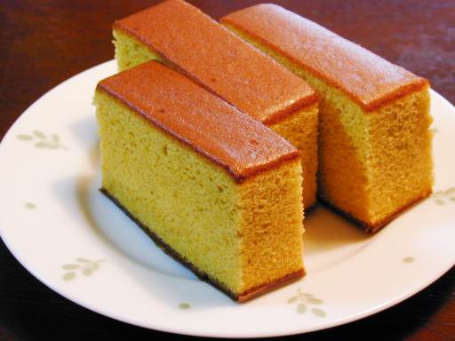 普通のカステラよりも黄色味が強い。(下の画像が現実に近いです)