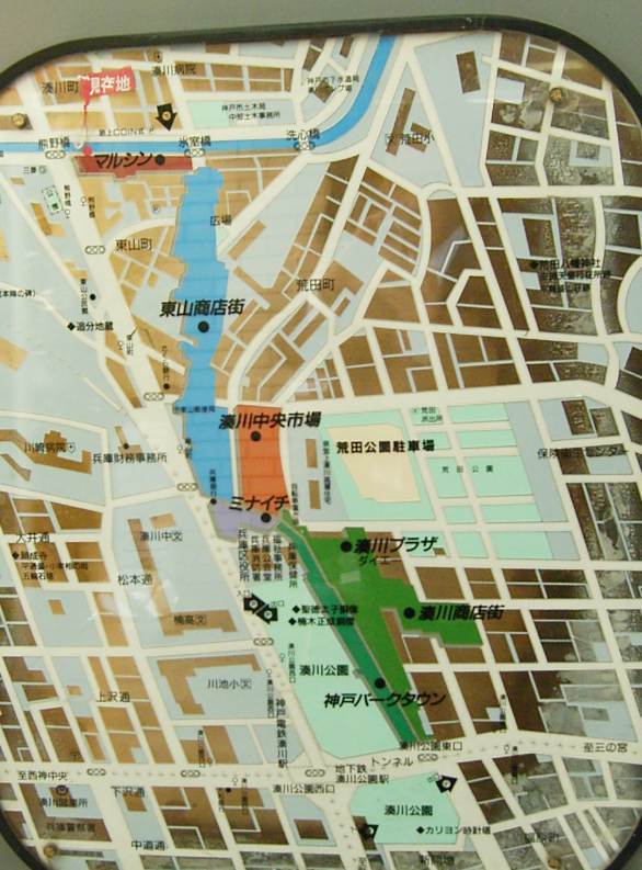 湊川商店街から始まって、ミナイチ、東山商店街、湊川中央市場、マルシン