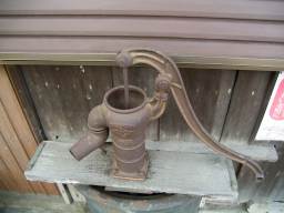 丹下町常夜灯(左)と東福寺前の手押しポンプ(右)